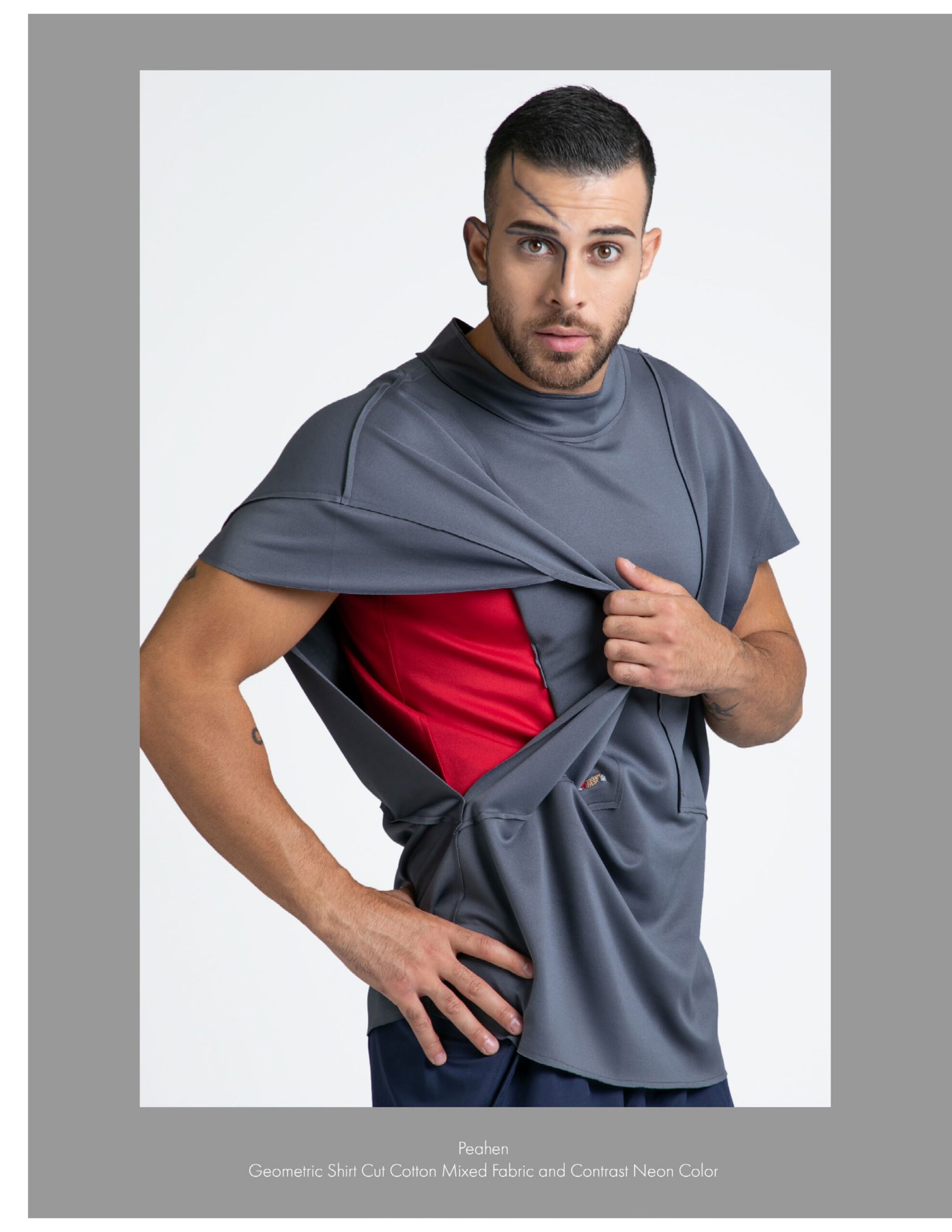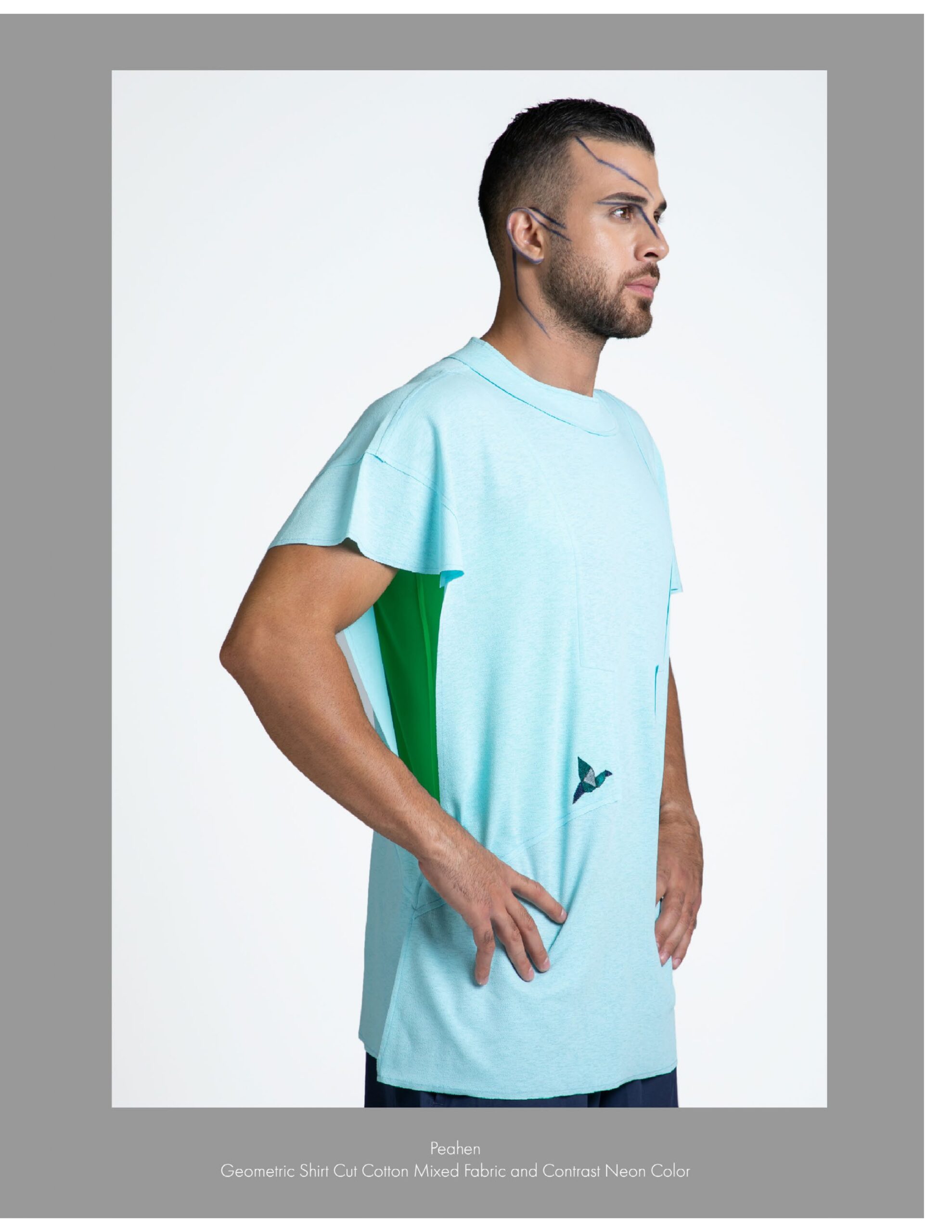 Geometric Shirt Cut Cotton Mixed Fabric and Contrast Neon Color
