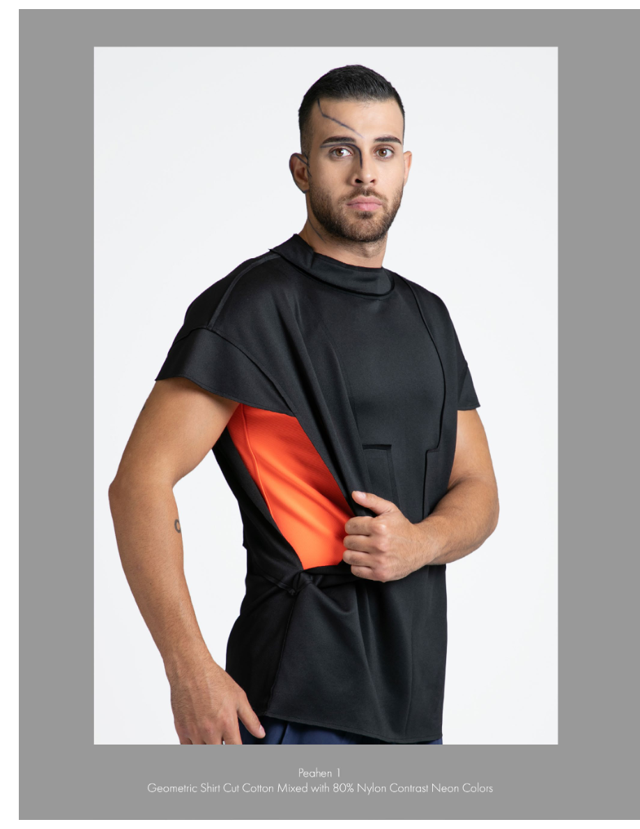 Geometric Shirt Cut Cotton Mixed with 80% Nylon Contrast Neon Colors
